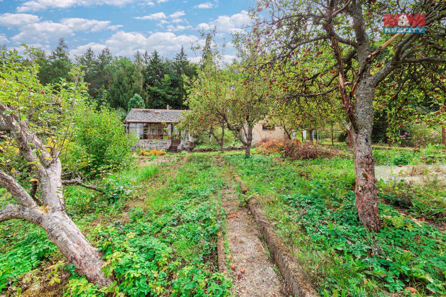 Zahrada se zděnou chatou přímo u lesa! Nachází se v oblíbené a klidné zahrádkářské kolonii v Karlových Varech - Horních Drahovicích. V přilehlém lese jsou v blízkosti vyhlídky Tří Kříže, odkud se naskýtá úchvatný pohled na celou kolonádu, Ottova výšina nebo rozhledna Goethova vyhlídka. Zahrada je osázena jabloněmi, které spolu se záhonky už čekají, až se o ně postarají Vaše šikovné ruce, aby Vás odměnily každoroční bohatou úrodou. K dispozici jsou dva sklepy, ideální pro skladování Vašich výpěstků. Elektřina je přivedena na hranici pozemku. Sezónně je dostupná voda z vodovodního řádu. Chata je před rekonstrukcí, tak si ji můžete upravit podle vlastních představ a plánů. Místo je skutečně ideální pro odpočinek a relaxaci v přírodě, přitom v dosahu všech vymožeností krajského města Karlovy Vary. Do centra je to pouhých 7 minut. Neváhejte a přijďte se přesvědčit o kouzlu tohoto místa osobně.