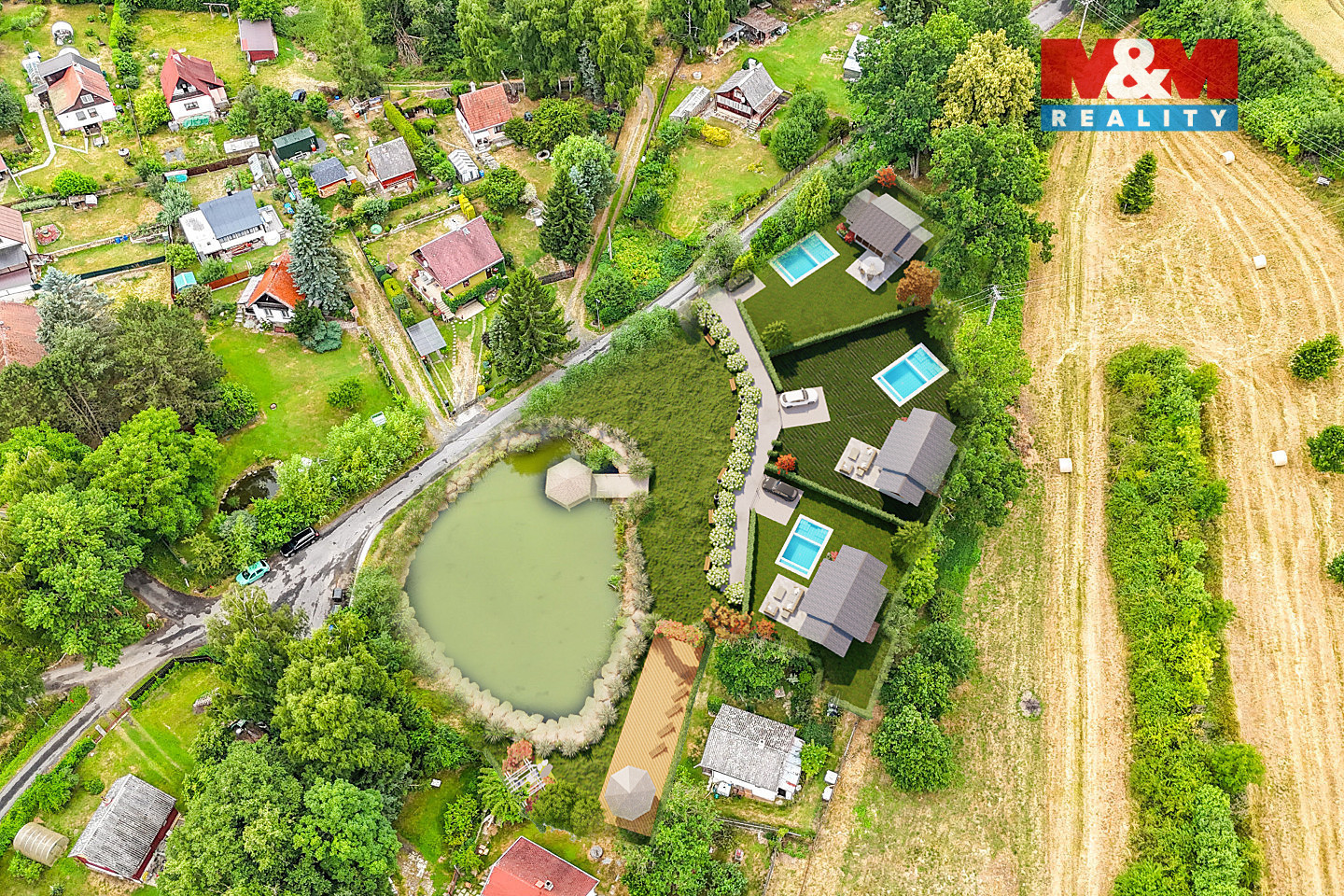 Nabízíme k prodeji exkluzivní pozemek o rozloze 3 217 m2 v malebné obci Bříza u Chebu, který je dle územního plánu určen k výstavbě rodinných domů (BV - bydlení v rodinných domech - venkovské). Pozemek disponuje všemi klíčovými prvky - nachází se zde chovný rybník o ploše 1 019 m2, vrtaná studna (120 m), elektrická přípojka a přímý přístup z obecní komunikace. Velkou výhodou je možnost rozdělení pozemku až na 3 samostatné stavební parcely, z nichž každá může být zastavěna rodinným domem. Tento koncept nabízí zajímavou příležitost jak pro vlastní výstavbu, tak pro investory či developery hledající menší rezidenční projekt. Díky své dispozici a charakteru lze vytvořit například uzavřený rezidenční celek s vlastní přístupovou cestou, zahradami a společnou relaxační zónou u rybníka. Pro lepší představu byla zpracována nezávazná vizualizace, která slouží pouze jako inspirace a nenahrazuje projektovou dokumentaci. Pro více informací kontaktujte makléře!